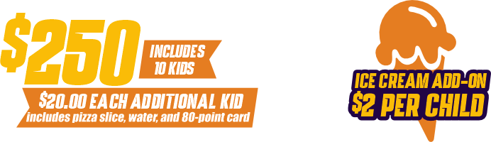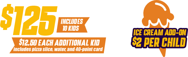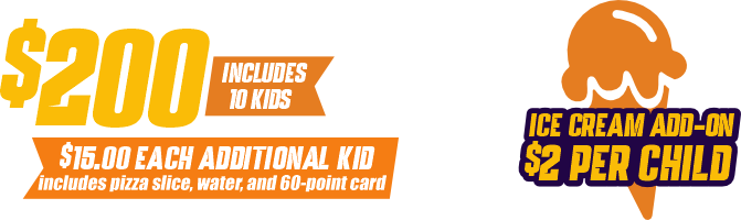 Our party packages make celebrating easy—each one includes delicious pizza, play cards for the arcade, and plenty of fun for the whole crew.
